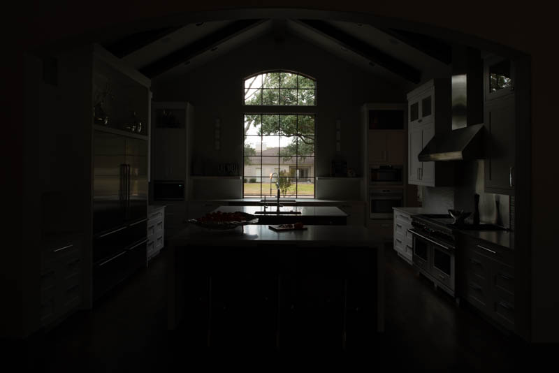 In the lights-off exposure, the view out the window is not blue. I can layer these last two images together in Photoshop, to make the finished product.