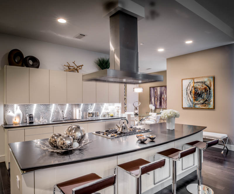 SHOOTING AT NIGHTWell, OK. There are times when may really want to completely eliminate the daylight. Even shoot at night. This happens often in the rooms where the lighting is a specific part of the interior design, and we don't want it to be overpowered or "filled in" by the window light. Kitchens are often prime examples. Even though windows are important, adding lots of dynamics to most interior photos, I often shoot kitchens at night, from angles that don't show any large windows. Some bedrooms seem to work better when they are shot at night. But even then, you don’t want the windows to render black.